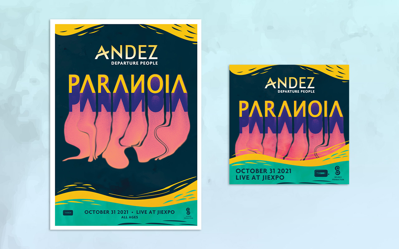 Created brand identity and web design for musician Andez "Departure People". The initial approach was to formulate a clean and modern visual identity, yet with his fun, fluid, and upbeat style of music I incorporate bold color with organic movement.