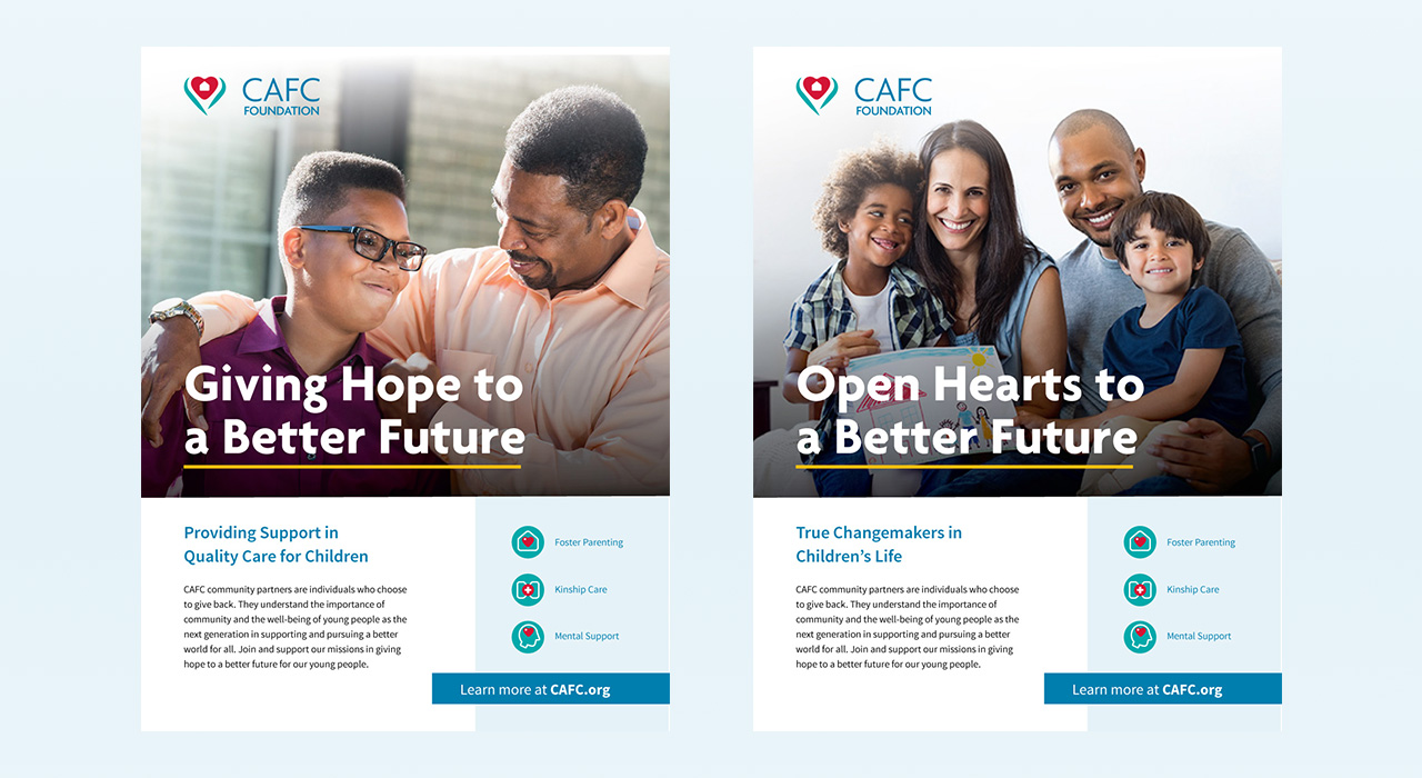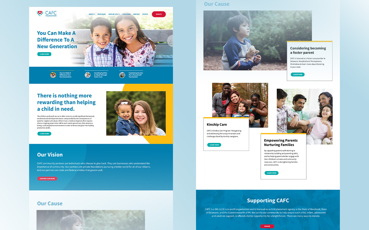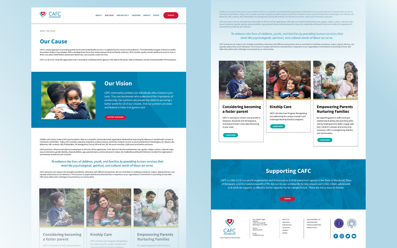 The CAFC Foundation is a mission-driven organization providing quality family and mental health services with a developmental focus that emphasizes personal and family resiliency. Partnering with the CAFC Foundation in leading them in the rebranding strategy and designing a new modern website that is engaging and attractive. Part of the plan for the brand refresh is to find brand clarity, strengthen brand awareness, and amplify the brand values that make the organization unique.
